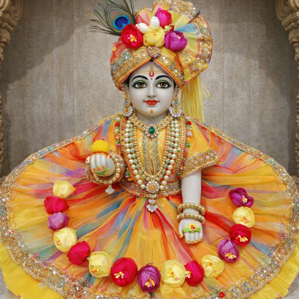 Be the first to review “Vrindavan Phool Shringar Rainbow Net Designer Poshak Pagdi for Laddu Gopal”